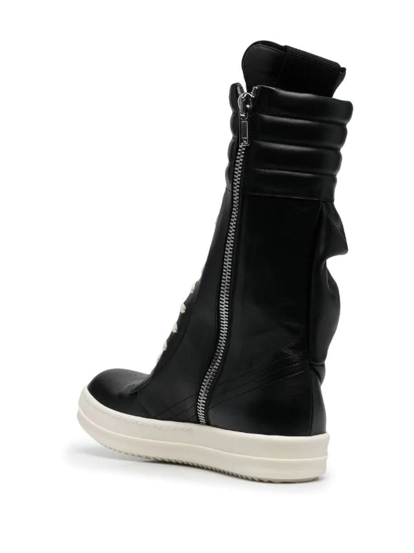 Doublure en cuir, bout rond, fermeture à lacer sur le devant, fermeture zippée sur le côté, hauteur cheville, semelle en caoutchouc.