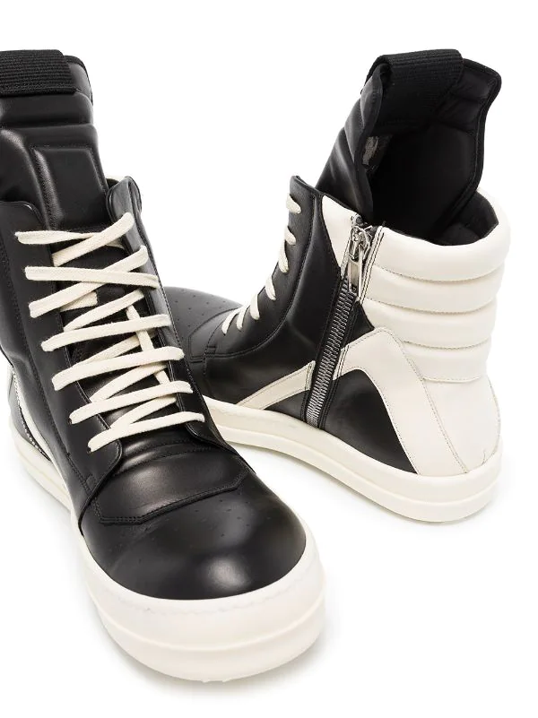 Bout rond, détails de perforations, fermeture à lacer sur le devant, languette oversize, modèle bicolore, coutures ton sur ton, semelle crantée en caoutchouc. Matière : cuir.