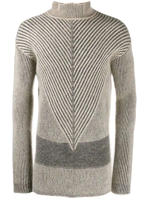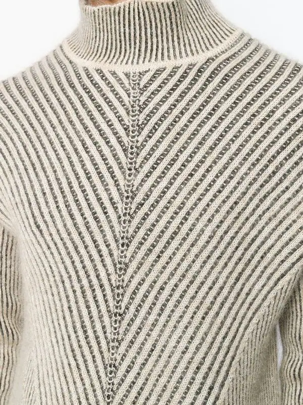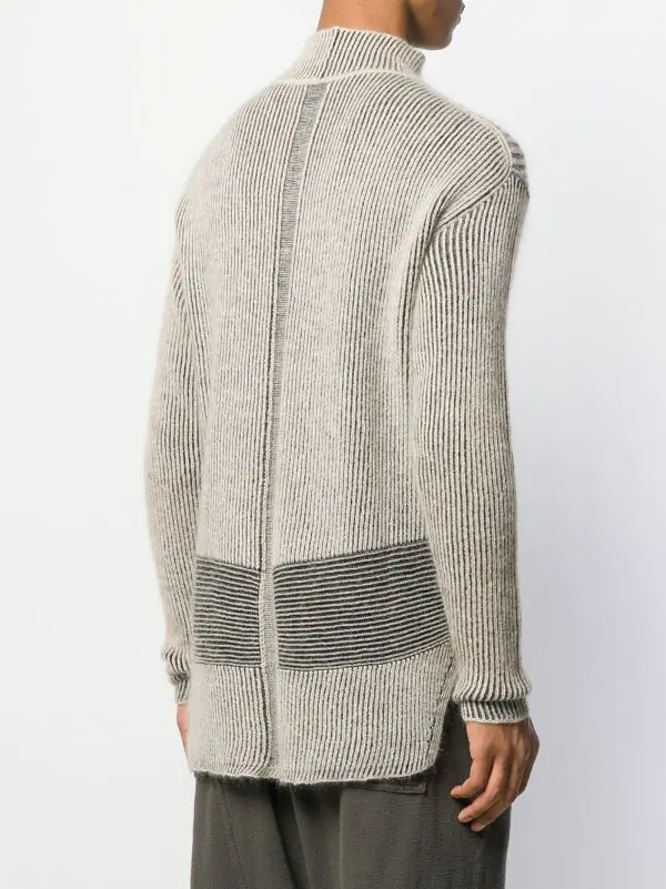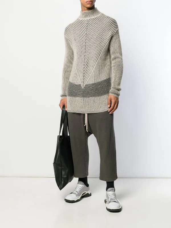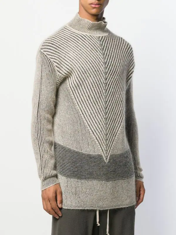 Pull oversize en maille irrégulière Rick Owens avec col cheminée, manches longues et coupe longue.