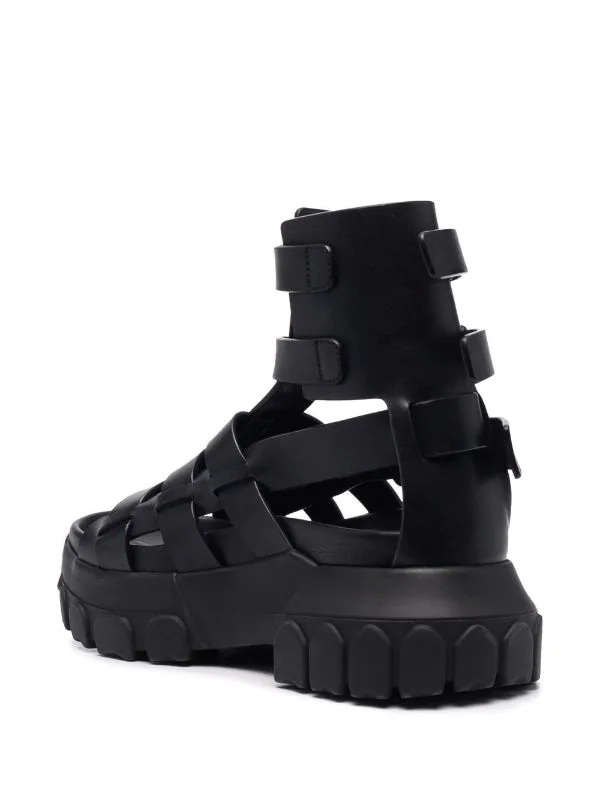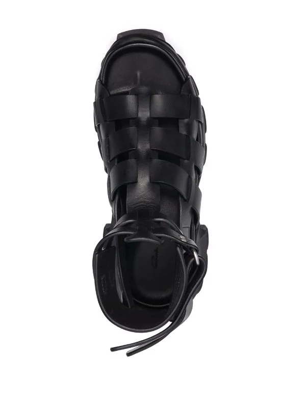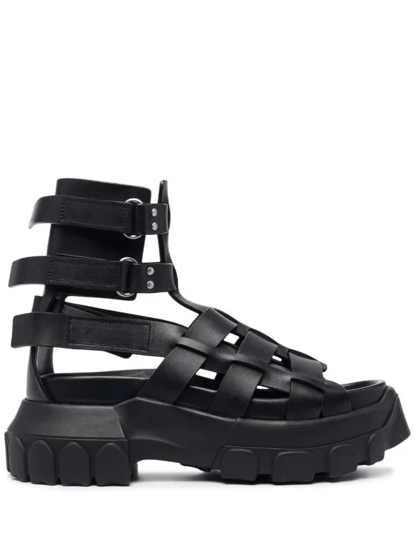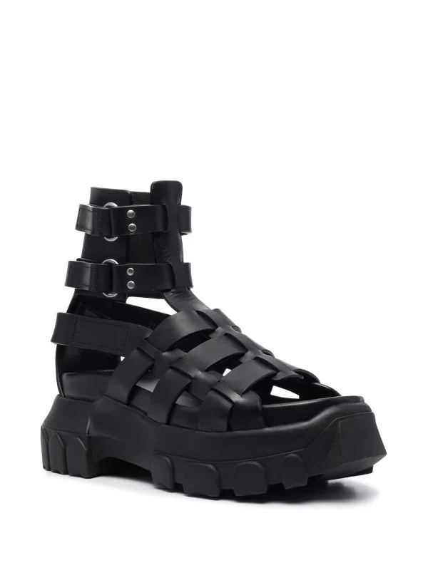 Ornements argentés, fermeture à boucles sur les côtés, bout rond, détails de découpes. Matière : cuir.