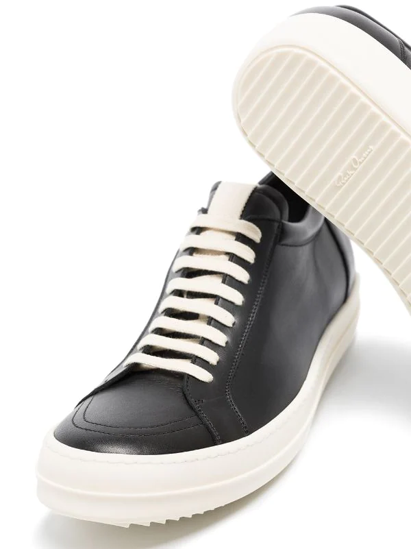Modèle bicolore, bout rond, fermeture à lacer sur le devant, languette à patch logo, semelle crantée en caoutchouc. Matière : cuir.