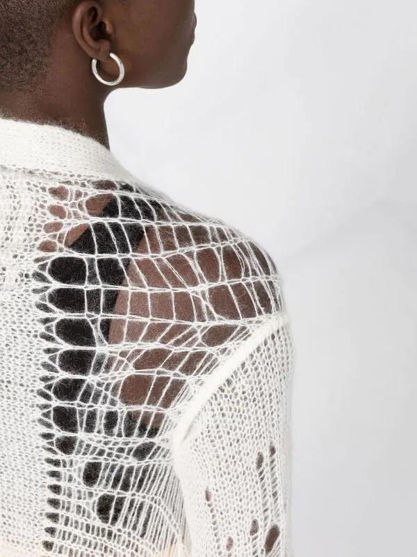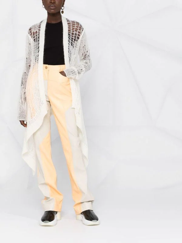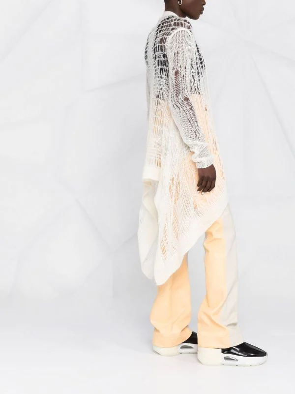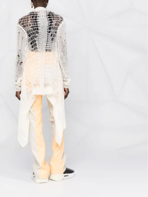 Effet usé, devant ouvert, manches longues, coupe longue. Couleur : blanc.
