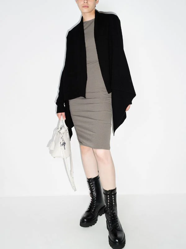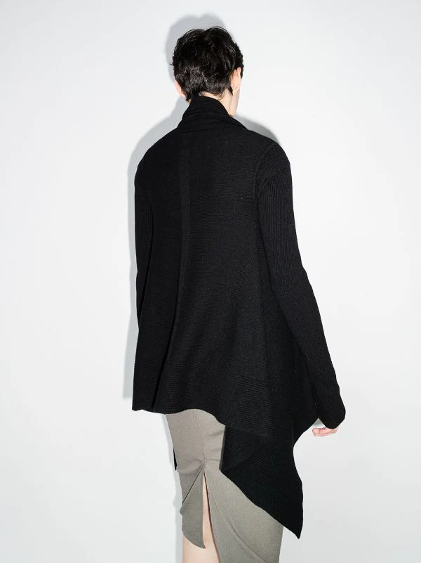 Détails drapés, devant ouvert, manches longues, poignets nervurés, ourlet asymétrique. Couleur : noir.