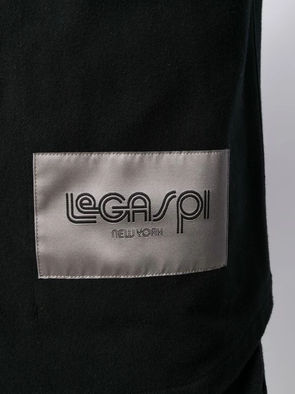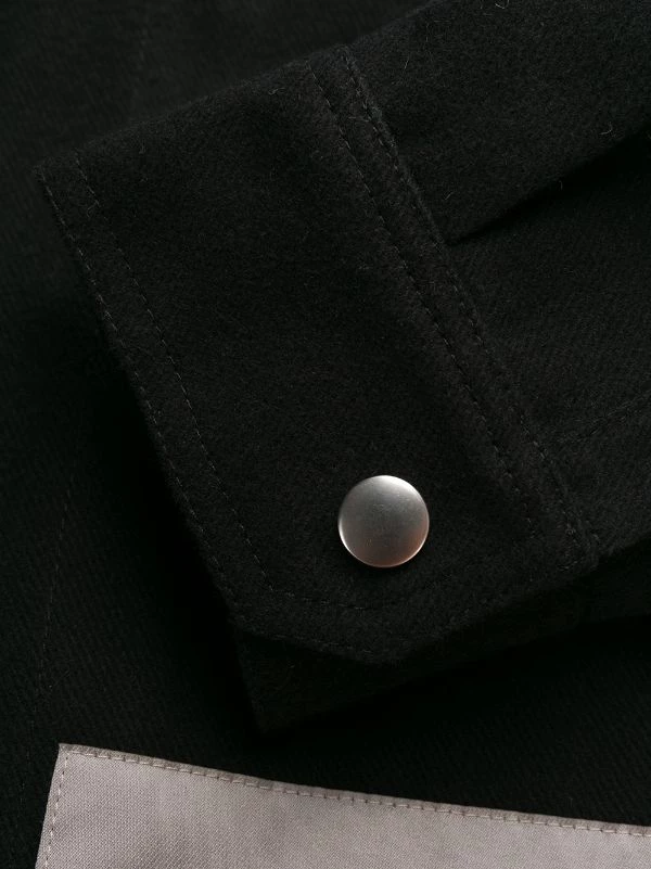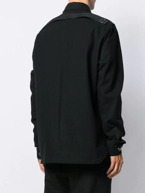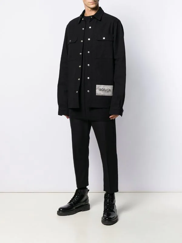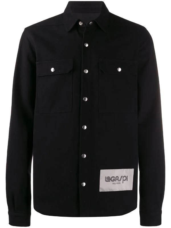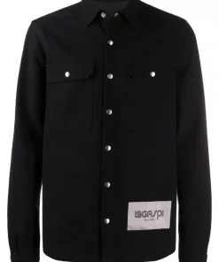 Chemise à patch logo en coton Rick Owens avec col classique, boutonnière sur le devant, deux poches poitrine, manches longues et ourlet droit. Couleur : noir.
