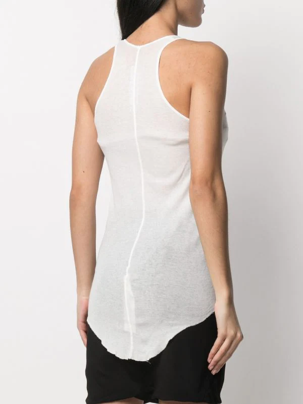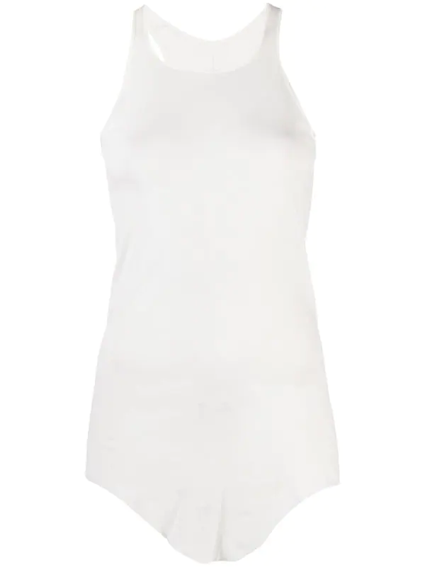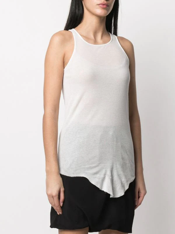 Encolure ronde, design sans manches, dos nageur, ourlet incurvé. Couleur : blanc. Matière : coton.