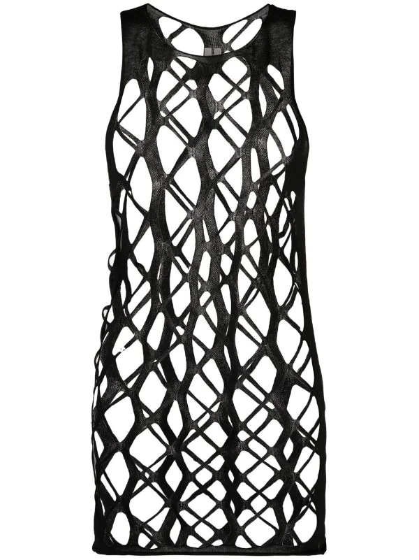 Détails de découpes, encolure ronde, design sans manches, construction stretch. Couleur : noir. Matière : coton.
