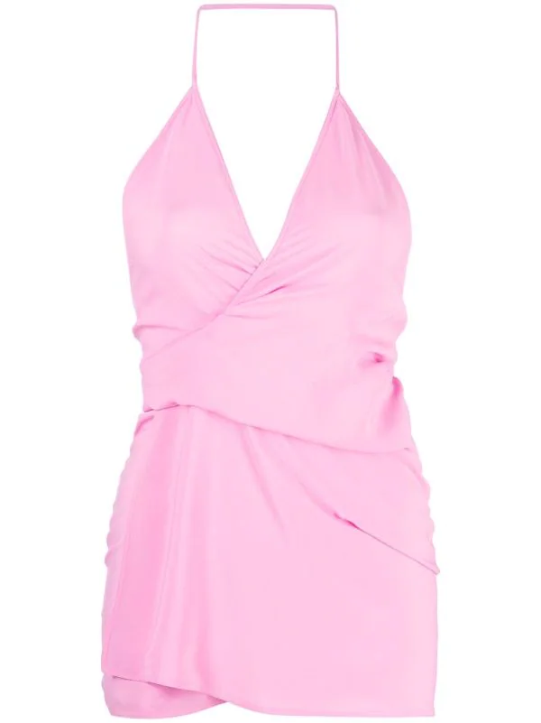 Design portefeuille, col v profond, dos-nu, fermeture nouée au dos, ourlet droit.
