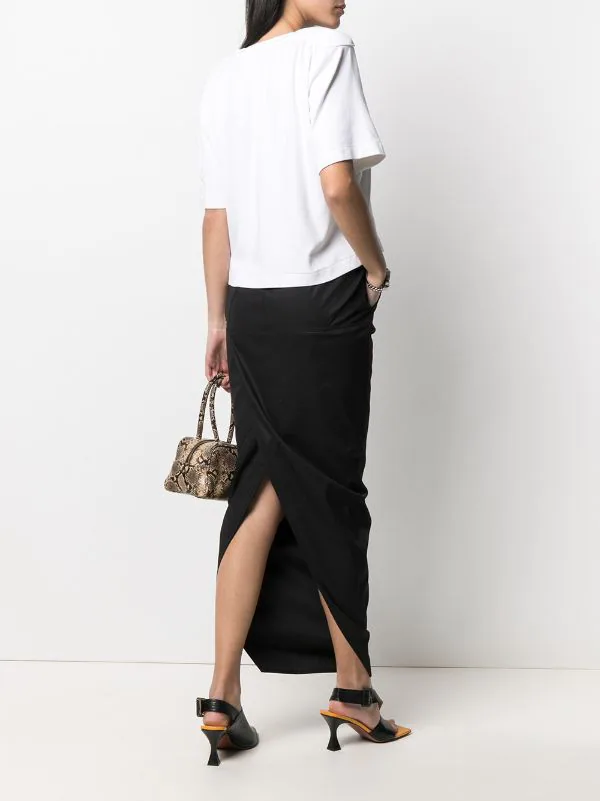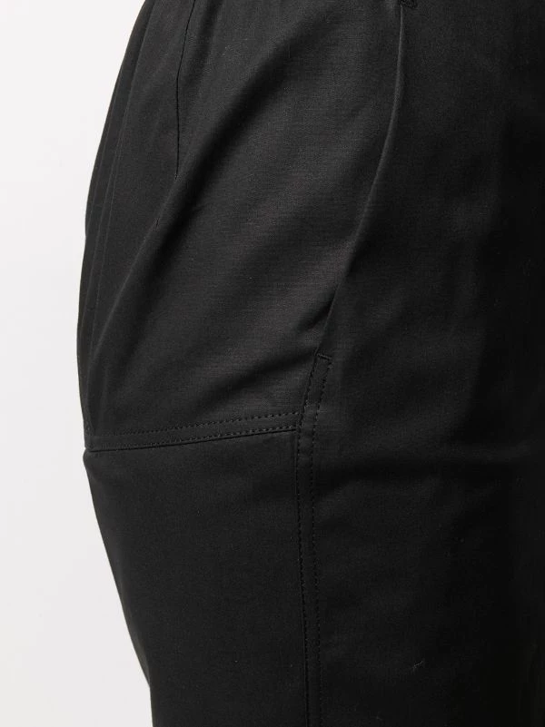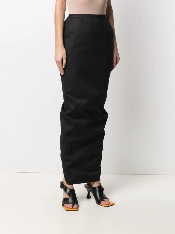 Taille haute, hauteur cheville, poches latérales fendues. Couleur : noir.
