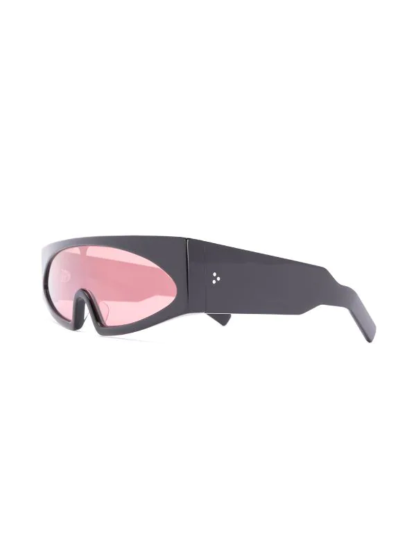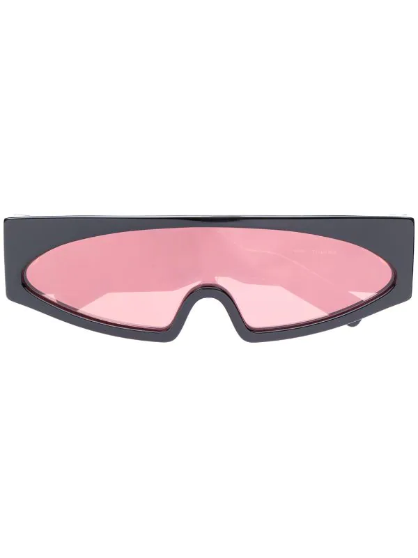 Lunettes de soleil oversize Rick Owens avec monture oversize et verres miroirs. Couleur : noir. Ce produit est vendu dans une boîte de protection.
