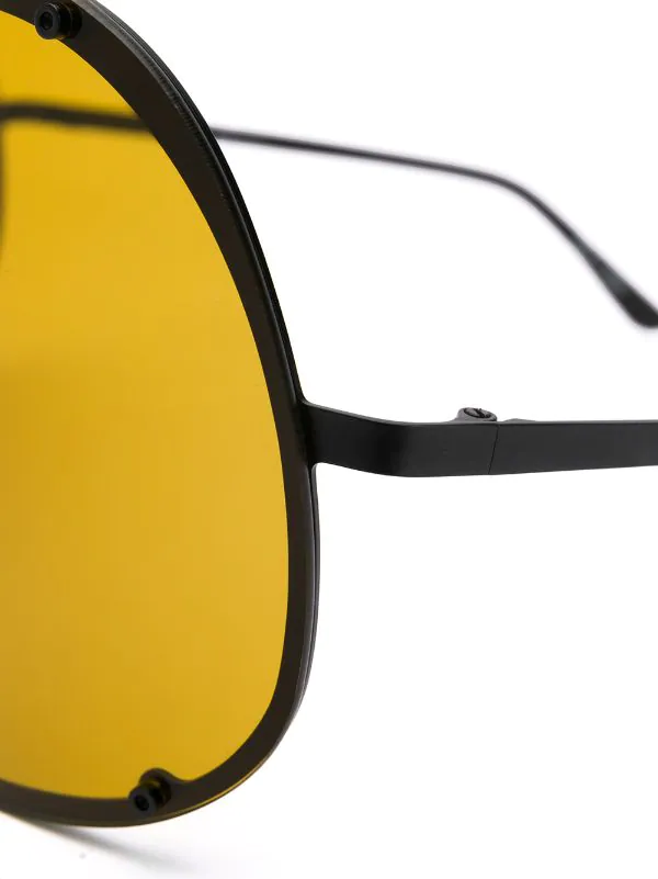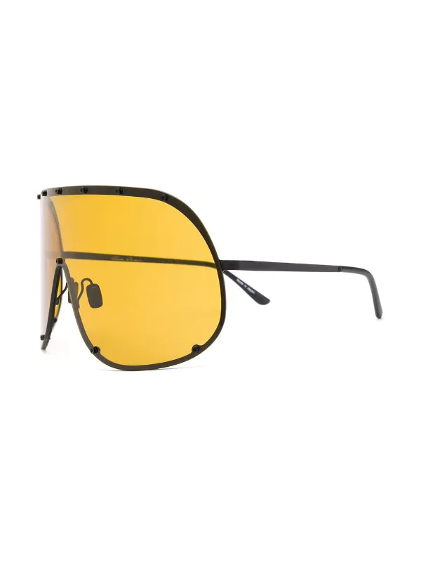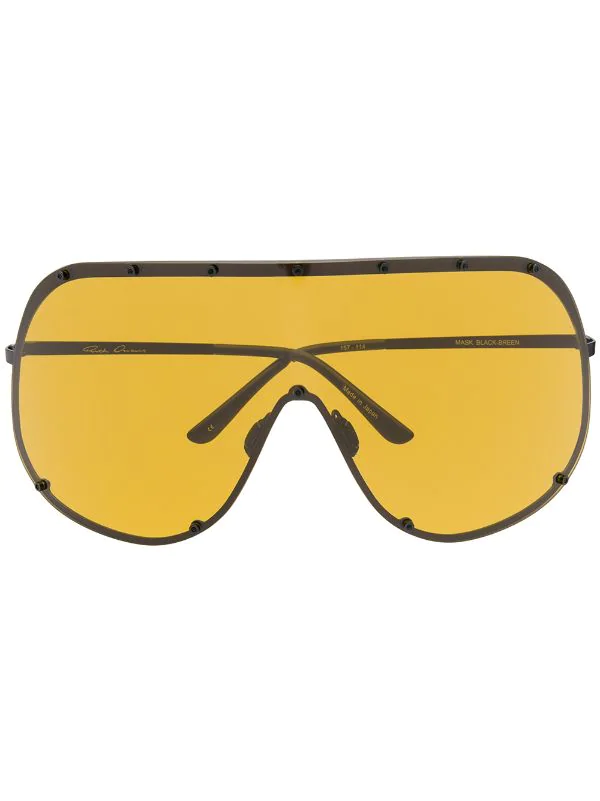 Lunettes de soleil Ros Mask en titane Rick Owens avec monture oversize, verres teintés, branches droites à extrémités angulaires et micro stud details. Ce produit est vendu dans une boîte de protection. Cet article est unisexe.