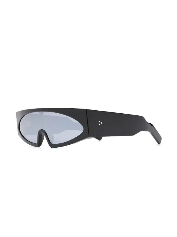 Lunettes de soleil Tecuatl à verres teintés Rick Owens avec monture carrée, logo sur les branches et branches droites à extrémités incurvées. Ce produit est vendu dans une boîte de protection.