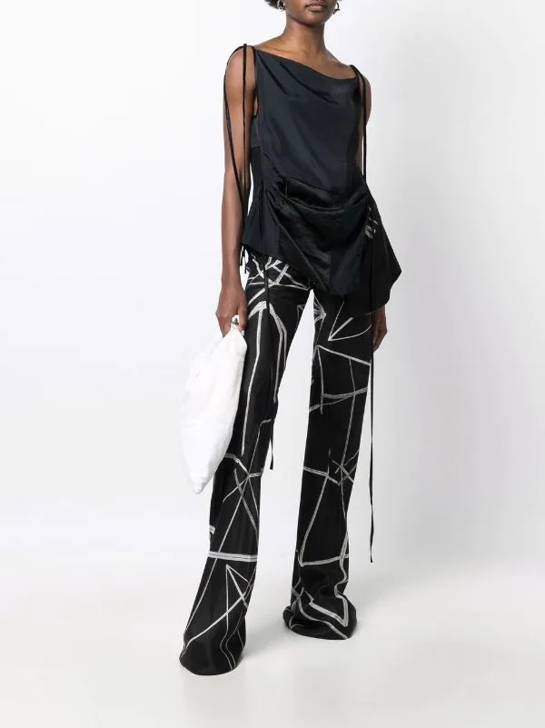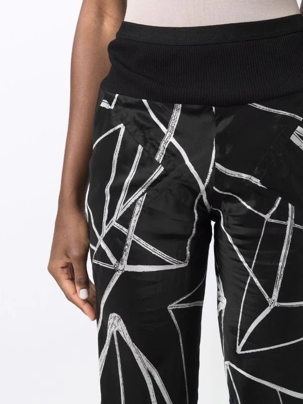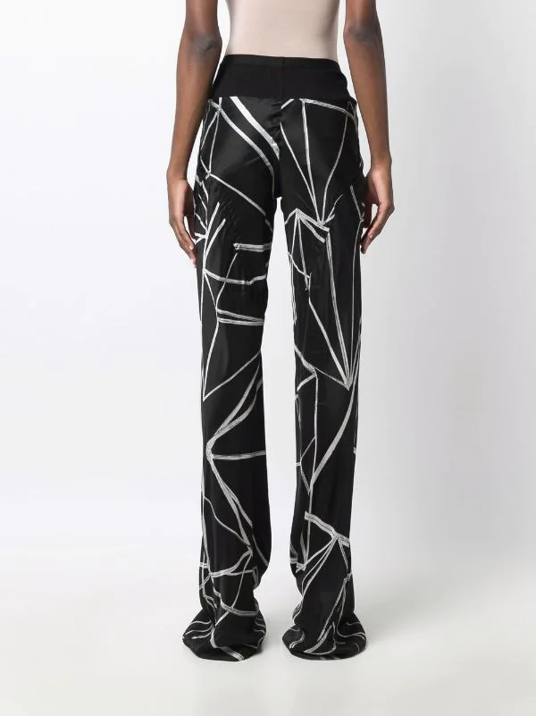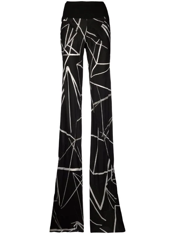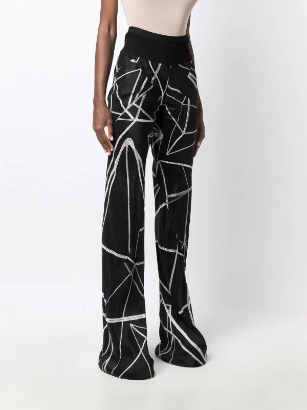 Coupe évasée, imprimé graphique intégral, taille haute, ceinture élastique.