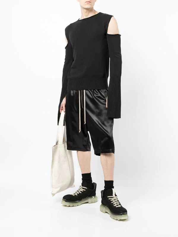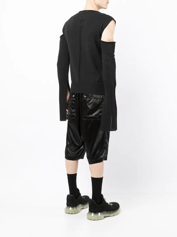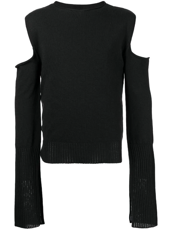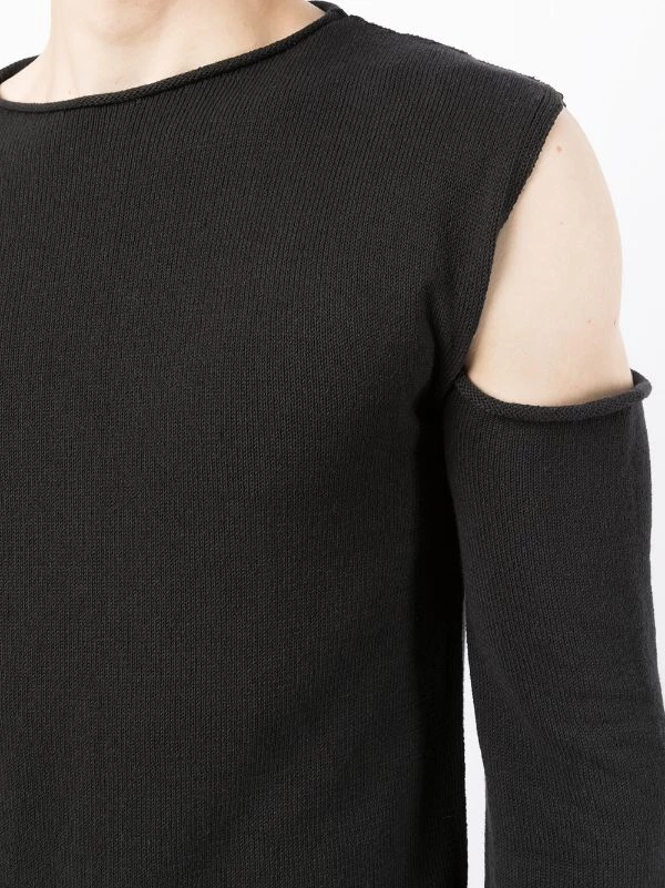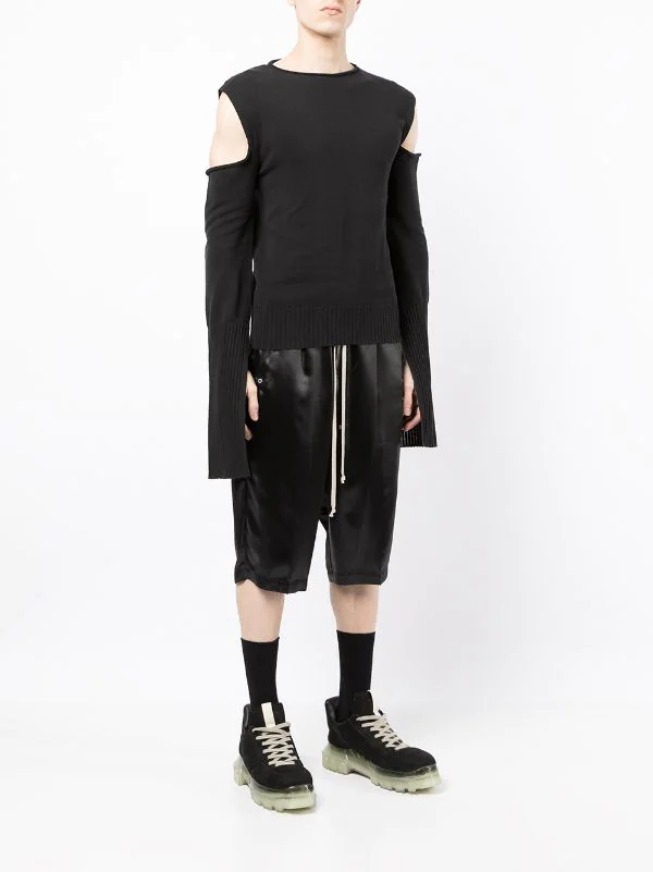 Détails de découpes, encolure ras du cou, manches longues, maille fine. Matière : coton.
