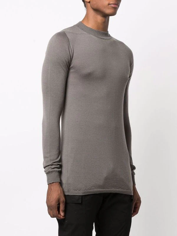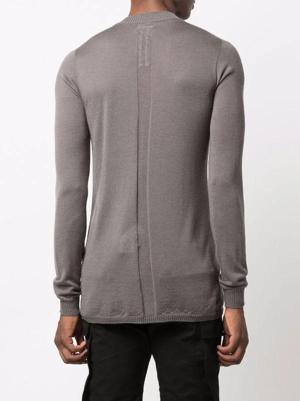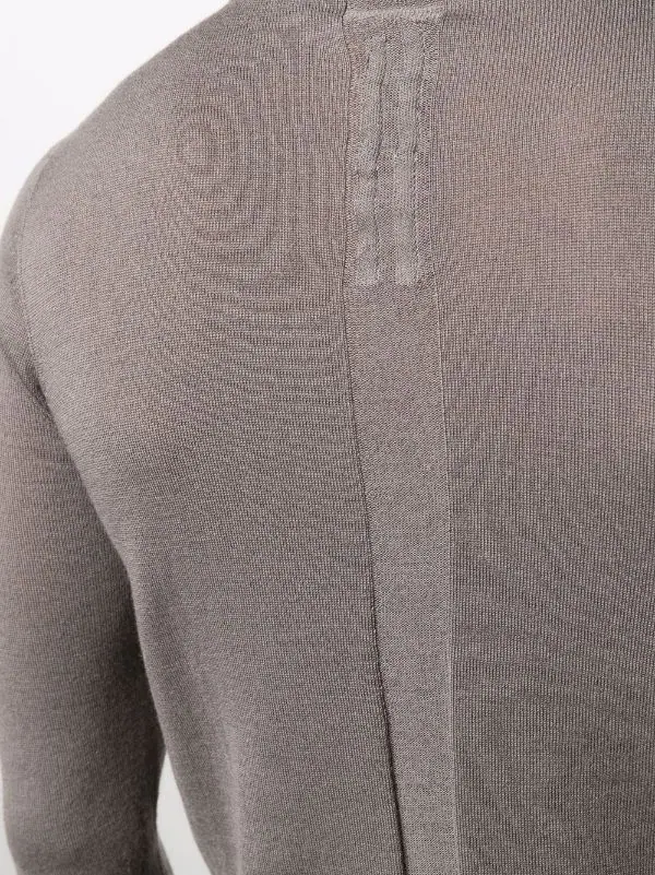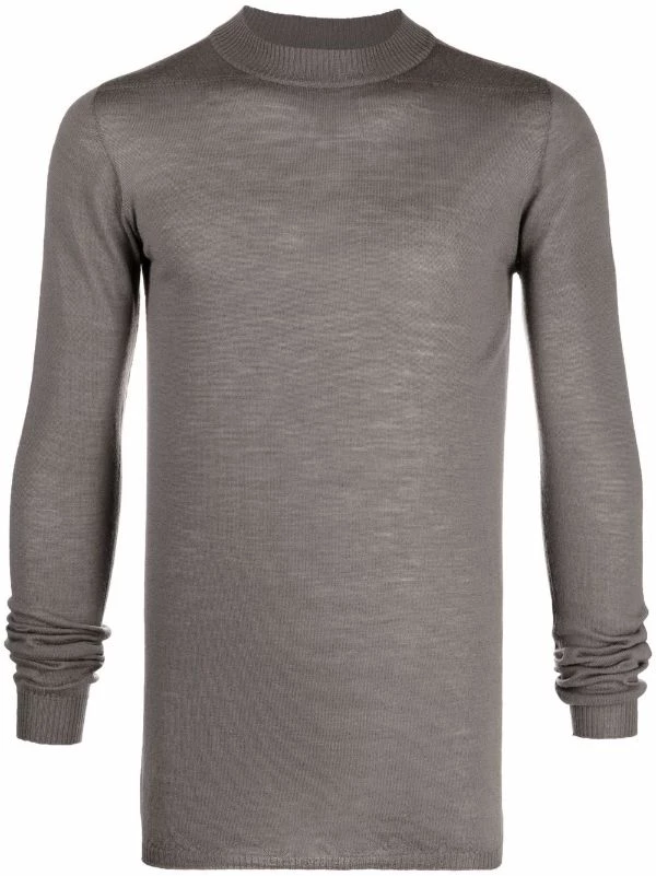Col cheminée, manches longues, poignets nervurés, maille fine. Matière : laine vierge.