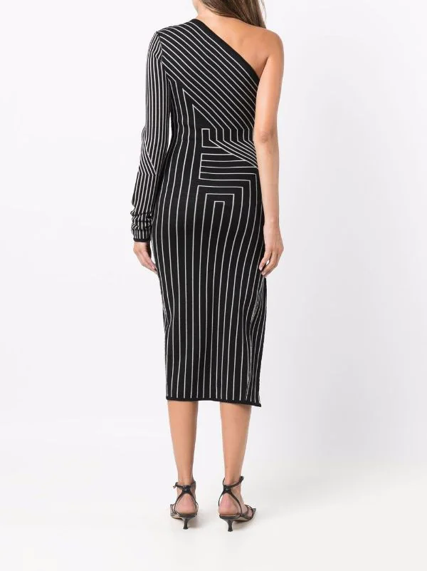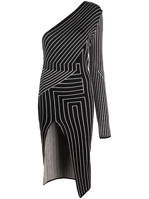 Motif géométrique, design asymétrique à une épaule, fente latérale, hauteur genou.