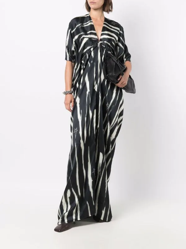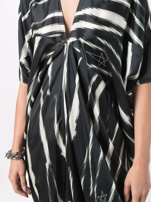 Imprimé zèbre, motif d’étoiles, col v, manches courtes, design drapé, manches extra-longues.