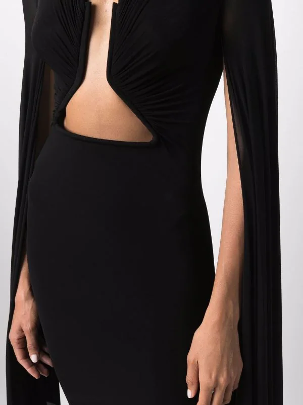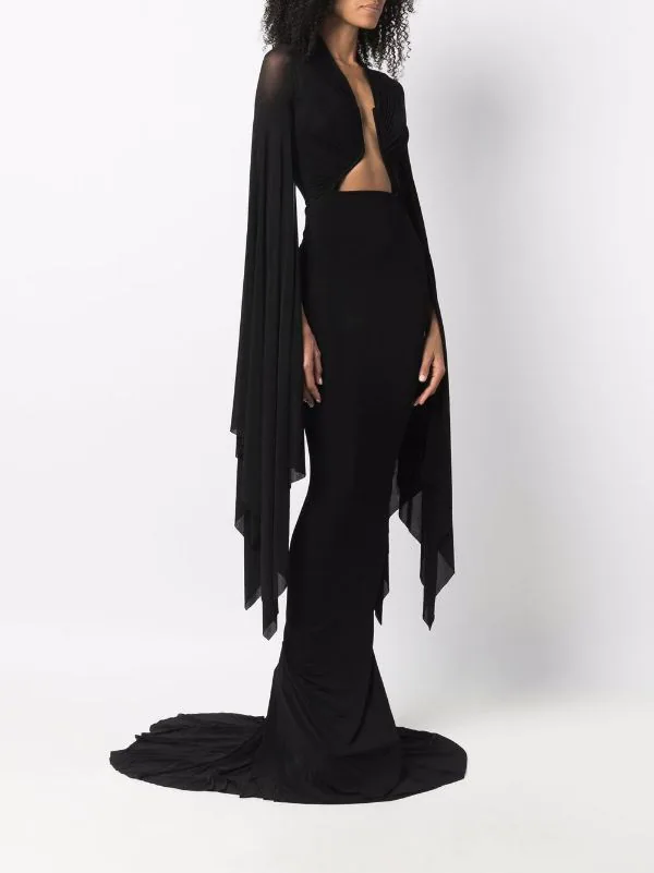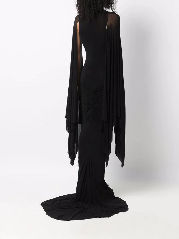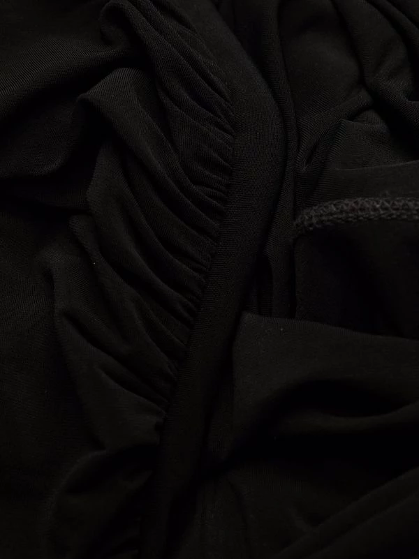 Détails de fronces, devant ouvert, manches longues, coupe longue, construction stretch. Couleur : noir.