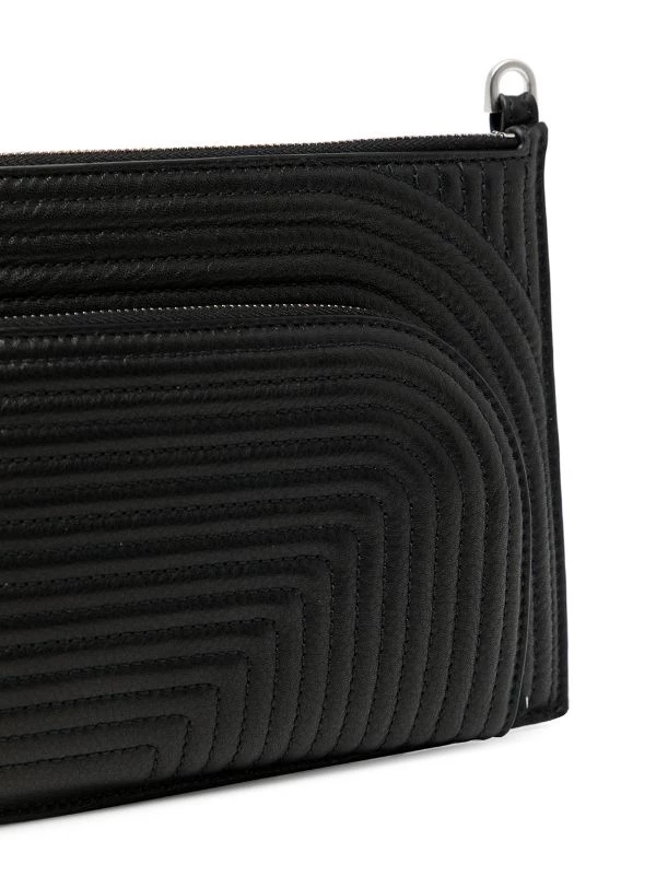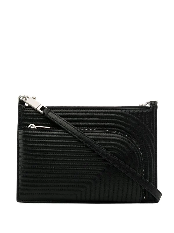Noir, cuir de veau, design matelassé, poches multiples zippées, bride porté épaule ajustable.