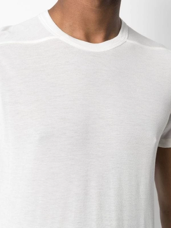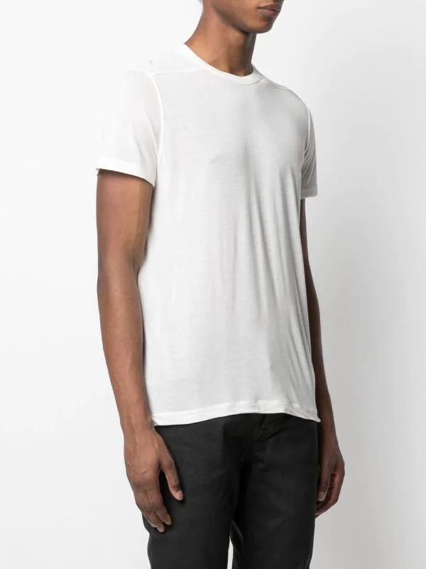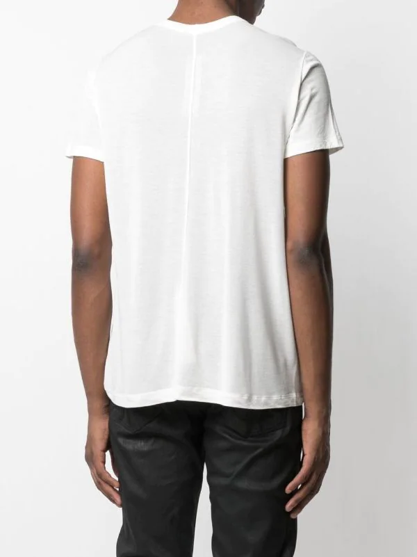 Encolure ronde, manches courtes, ourlet droit. Couleur : blanc. Matière : soie.