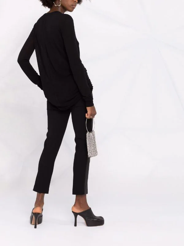 Maille fine, col v, manches longues, ourlet droit. Couleur : noir.
