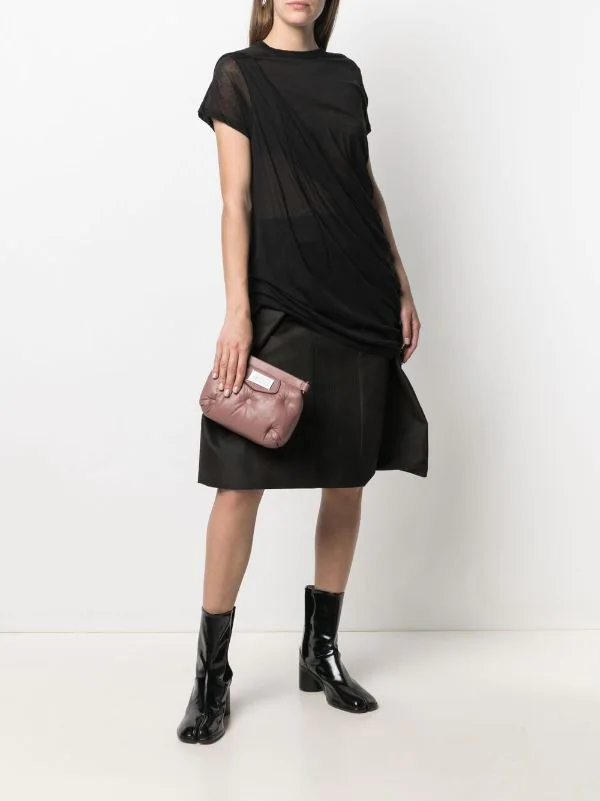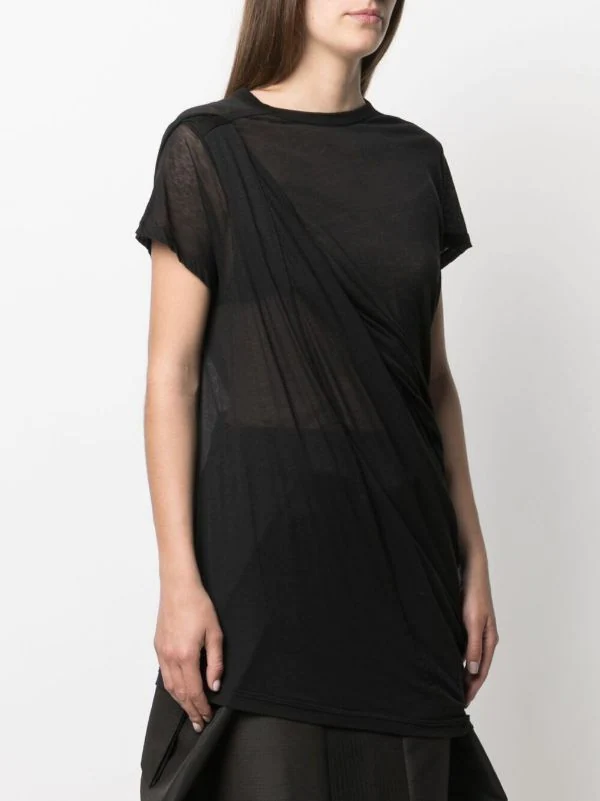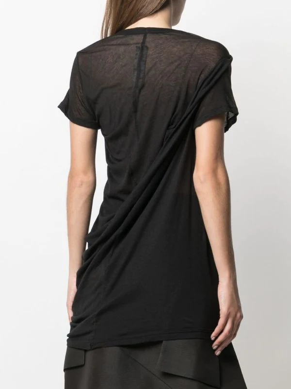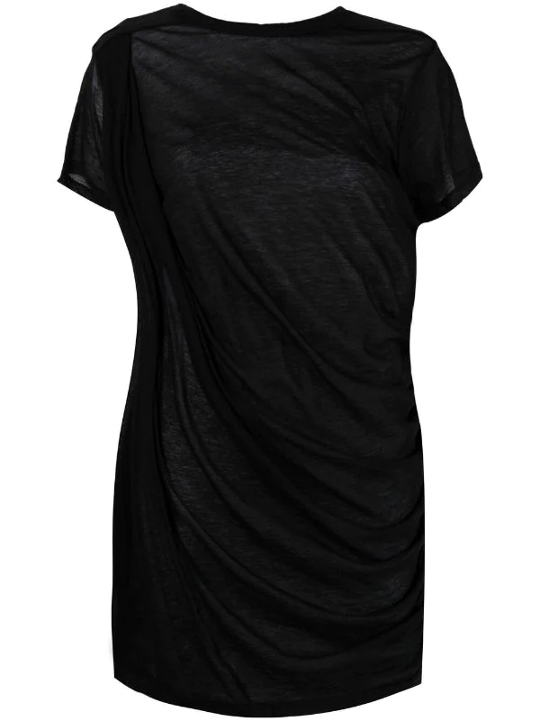 Encolure ronde, détails de fronces, manches courtes, ourlet droit, coupe courte. Couleur : noir. Matière : coton.