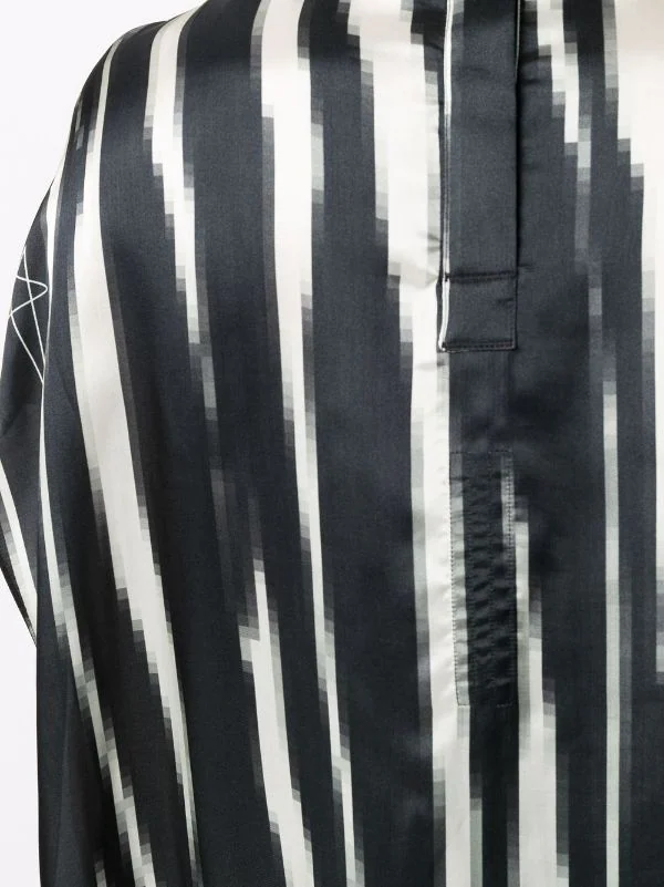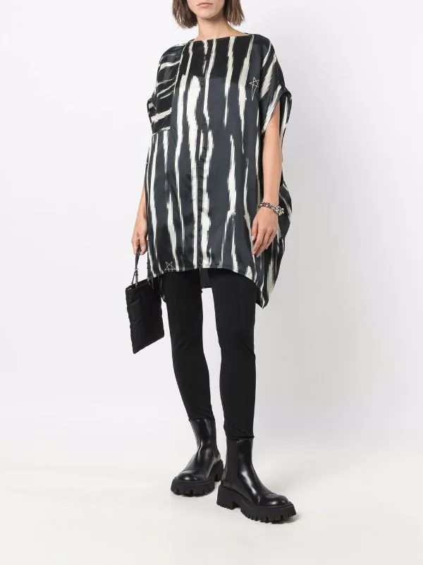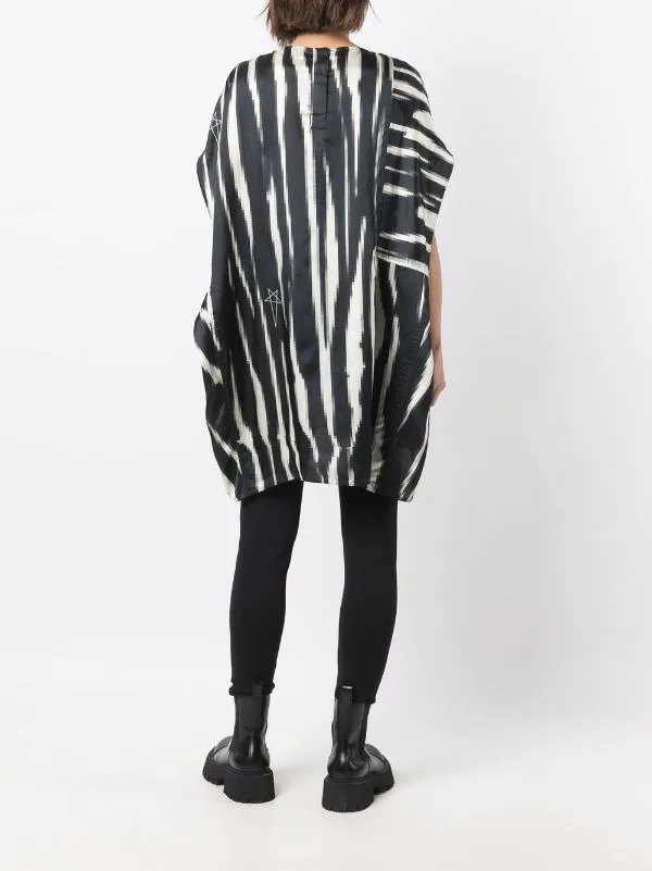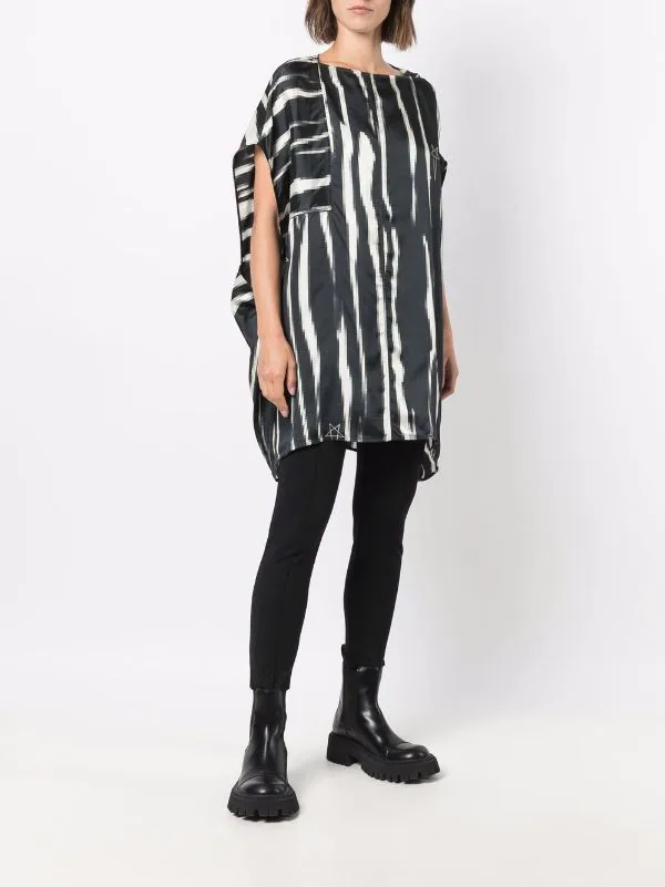 Imprimé zèbre, encolure bateau, manches courtes, fermeture arrière dissimulée, ourlet droit.