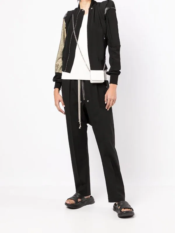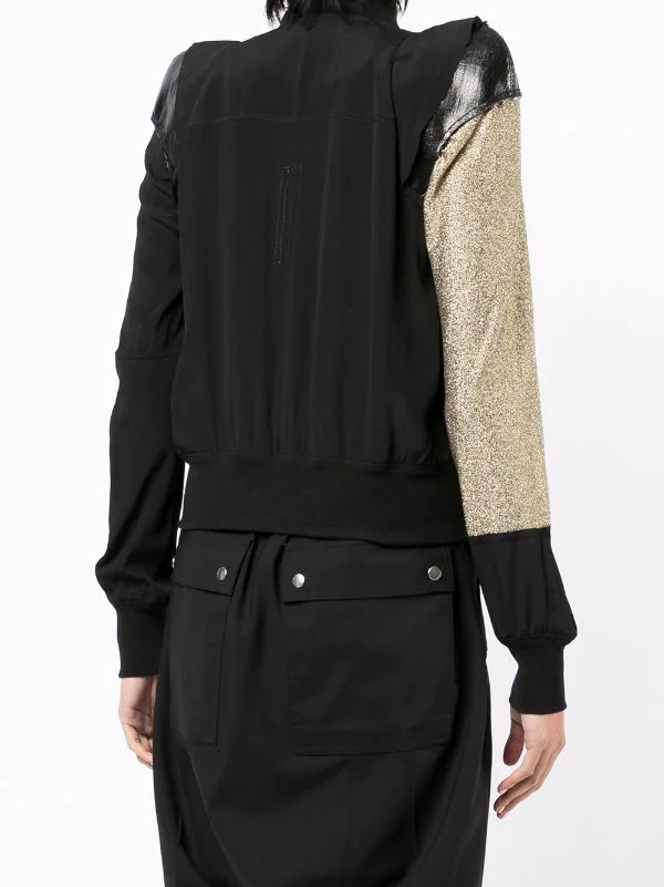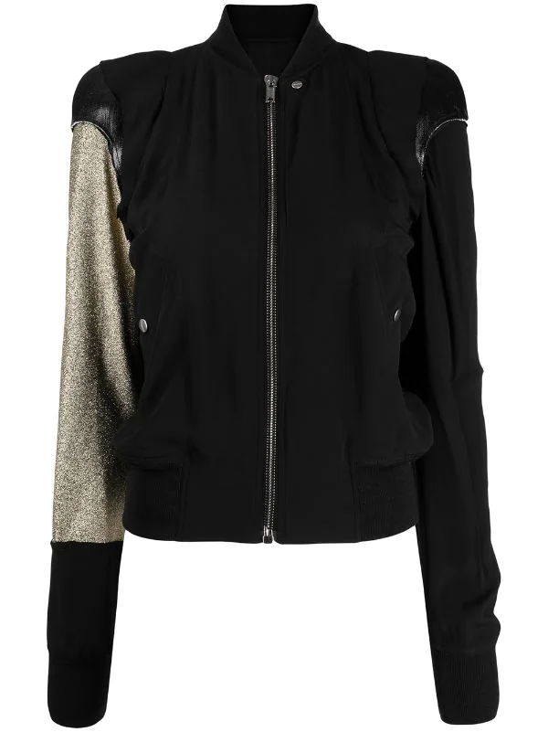 Design à empiècements colour block, détail pailleté, col style baseball, fermeture zippée devant, deux poches latérales fendues, manches longues, ourlet droit.