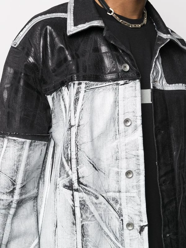 Modèle bicolore, design à empiècements, effet usé, col classique, boutonnière sur le devant, poches latérales kangourou, manches longues, ourlet droit.